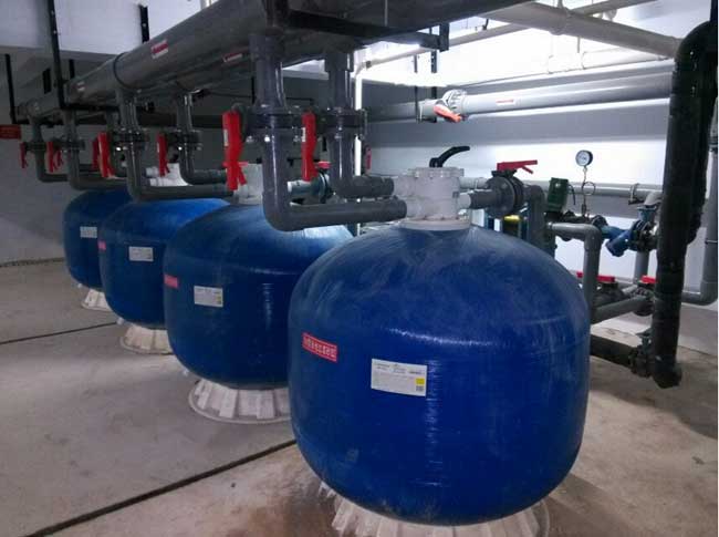 了解更多+游泳池循環(huán)水凈化設(shè)備機(jī)房應(yīng)設(shè)均衡水池(平衡水池)、循環(huán)水泵、過(guò)濾器、加藥裝置、換熱器、消毒設(shè)備、藥品庫(kù)、控制設(shè)備等,并宜按工藝流程順序排列。