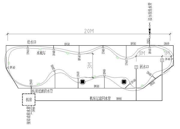 ⑦泳池補水與池底吸污相結合,吸池底出水可用來沖洗庭院,澆灌植物等,做到了節約用水。