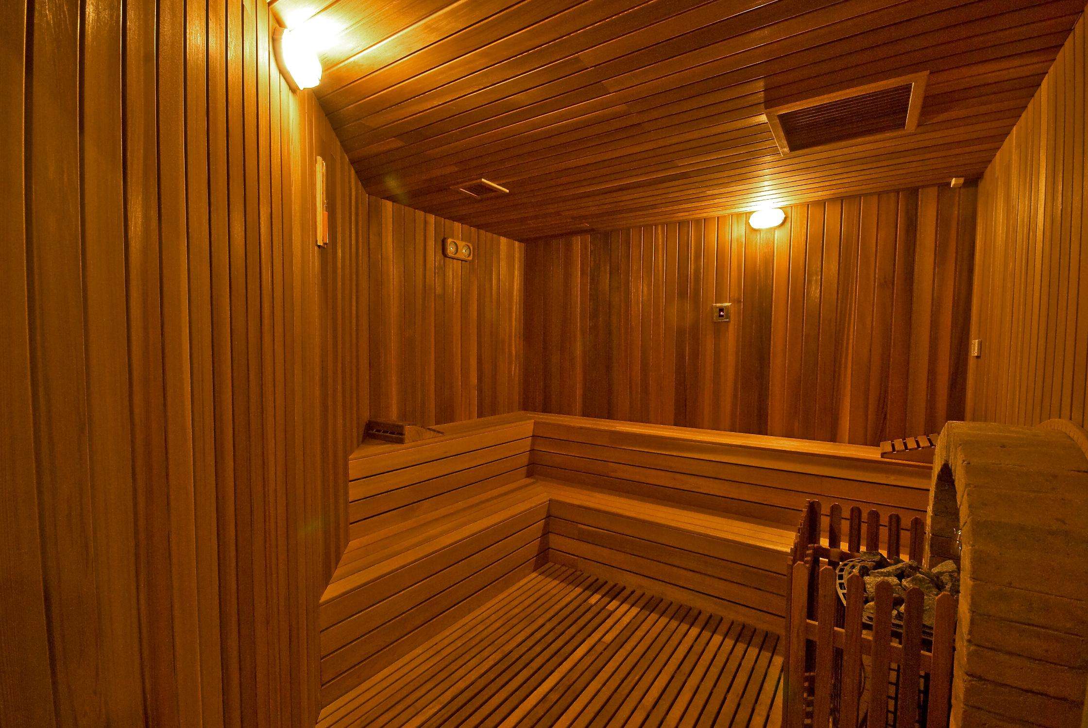 男女賓桑拿房均設置了噴水激熱設施,按下開關2-3秒,噴淋花灑噴水,按壓時間長噴水量多,反之噴水量小。
