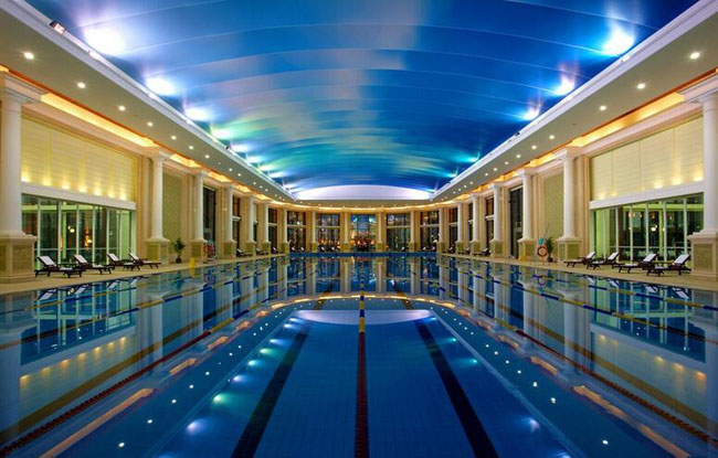 確保水質(zhì)達(dá)標(biāo)。因?yàn)榇蠖鄶?shù)游泳池是露天的,每天有大量的泳客下水游泳,人的皮膚會(huì)給水中帶來許多的細(xì)菌和病毒,游泳池開放時(shí)間多半在夏季,加之空氣中的塵埃也容易落入游泳池中,因此游泳池的水必須進(jìn)行凈化處理,才能保證泳客的身體健康。游泳池要定期進(jìn)行游泳池循環(huán)過濾→游泳池消毒→游泳池吸污→游泳池澄清→混凝等程序的游泳池水凈化處理,避免各種意外事故的發(fā)生。同時(shí),通過游泳池的水凈化處理也能進(jìn)行水的循環(huán)利用,節(jié)約資源,保護(hù)環(huán)境。
