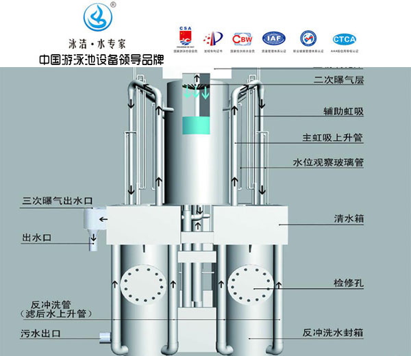 泳池水過(guò)濾凈化工藝包括:“降低池水的渾濁度、提高池水的透明度、去除池水中膠狀或顆粒狀有機(jī)物、細(xì)菌和病毒”。保證游泳者的安全、衛(wèi)生,對(duì)池水進(jìn)行過(guò)濾是不可缺少的。