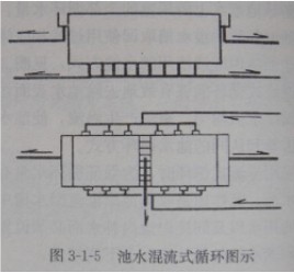 循環水經池端壁或側壁水面以下進水口進入,由設在池底回水口排除進行循環。