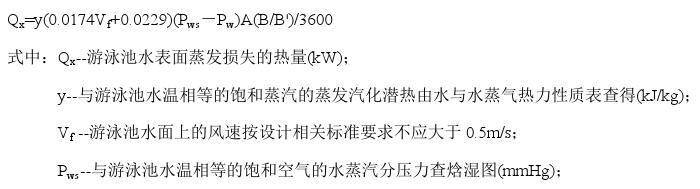 (1)游泳池水表面蒸發損失的熱量,按下式計算: