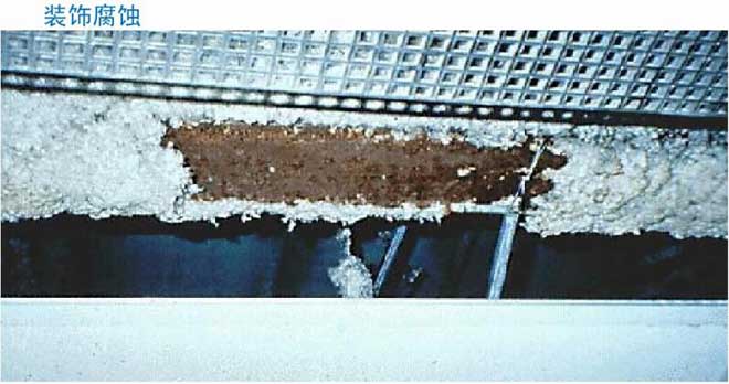 室內(nèi)游泳池由于池水表面蒸發(fā)容易使室內(nèi)充滿潮濕含氯的空氣,當(dāng)潮濕含氯的空氣遇到較冷物體就會凝結(jié)出冷凝水,由于冷凝水含有大量的氯,將會腐蝕所接觸到的建筑物,如使裝修面層生銹、起鼓、掉漆等,嚴(yán)重的時候回因腐蝕到受力鋼筋,使之抗拉強(qiáng)度降低而斷裂,造成房屋垮塌等危險。這情況在發(fā)達(dá)國家增發(fā)生過多次。